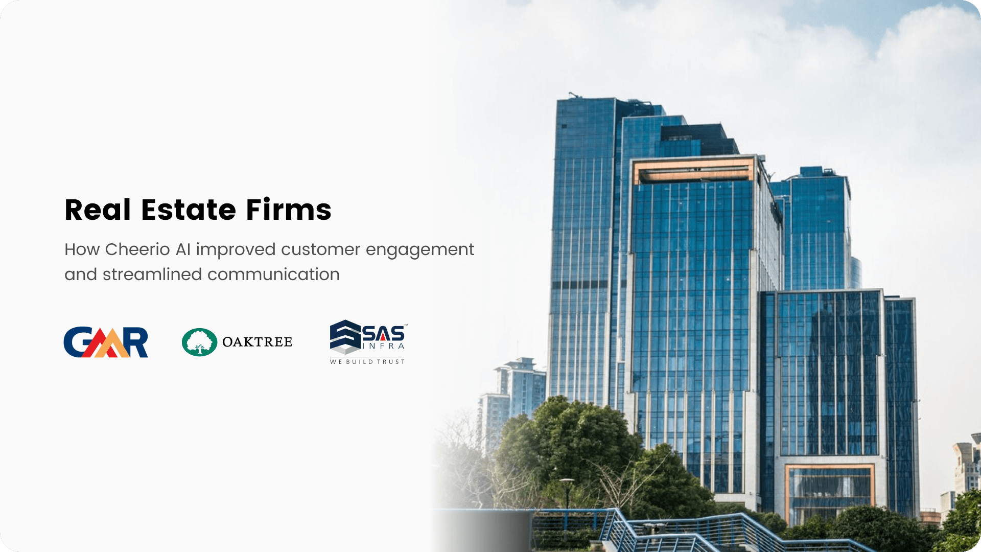 Cheerio AI partnered with prominent real estate firms like SAS Infra and OakThree to improve customer engagement, streamline communication, and automate payment follow-ups.