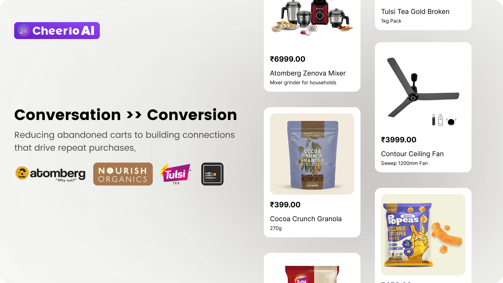 How has Cheerio AI supported D2C and e-commerce brands such as Atomberg, TulsiTea, and ToffeeCoffee Roasters in achieving scalable growth through personalized messaging and engagement strategies?