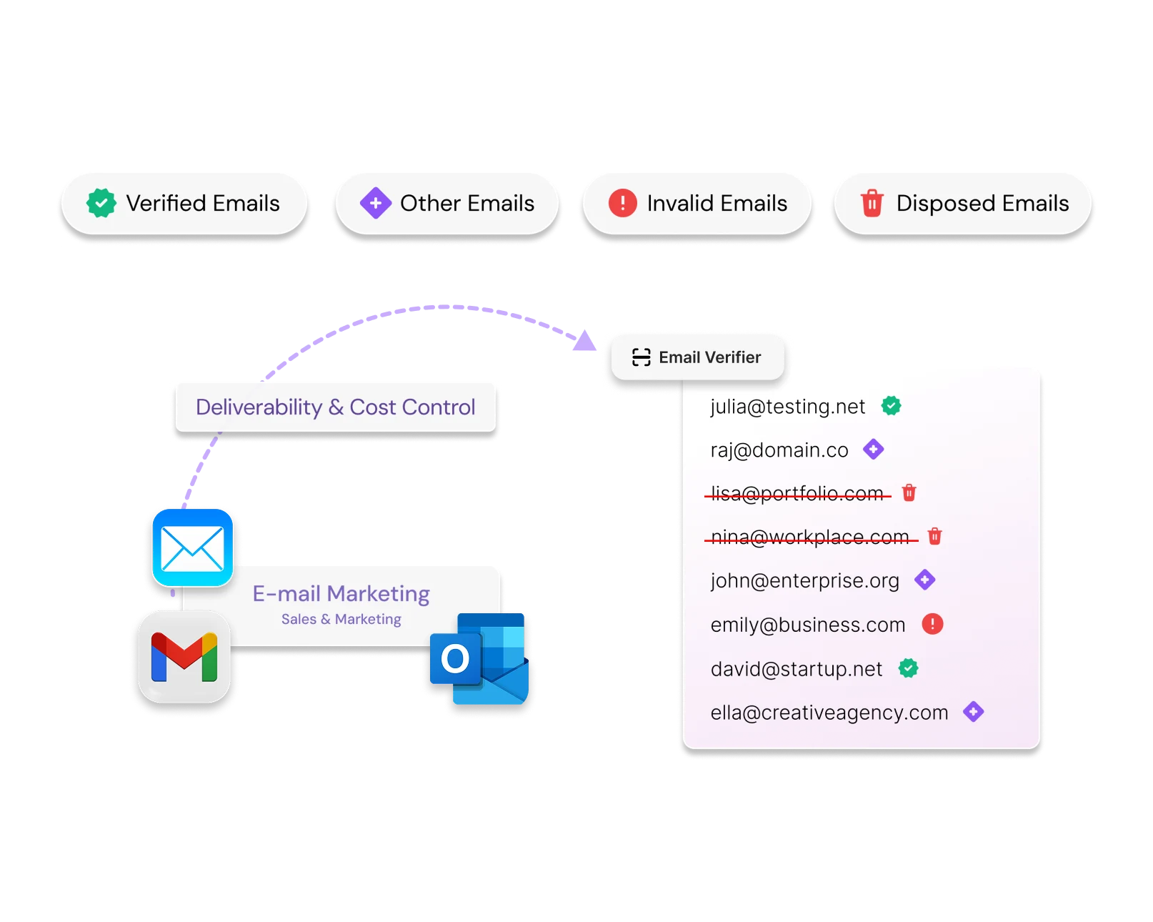 Verify email recipients before every send to reduce bounce rates and safeguard your sender reputation. Improve inbox placement by ensuring campaigns reach valid, active users. Maintain long-term email health while minimizing delivery risks.