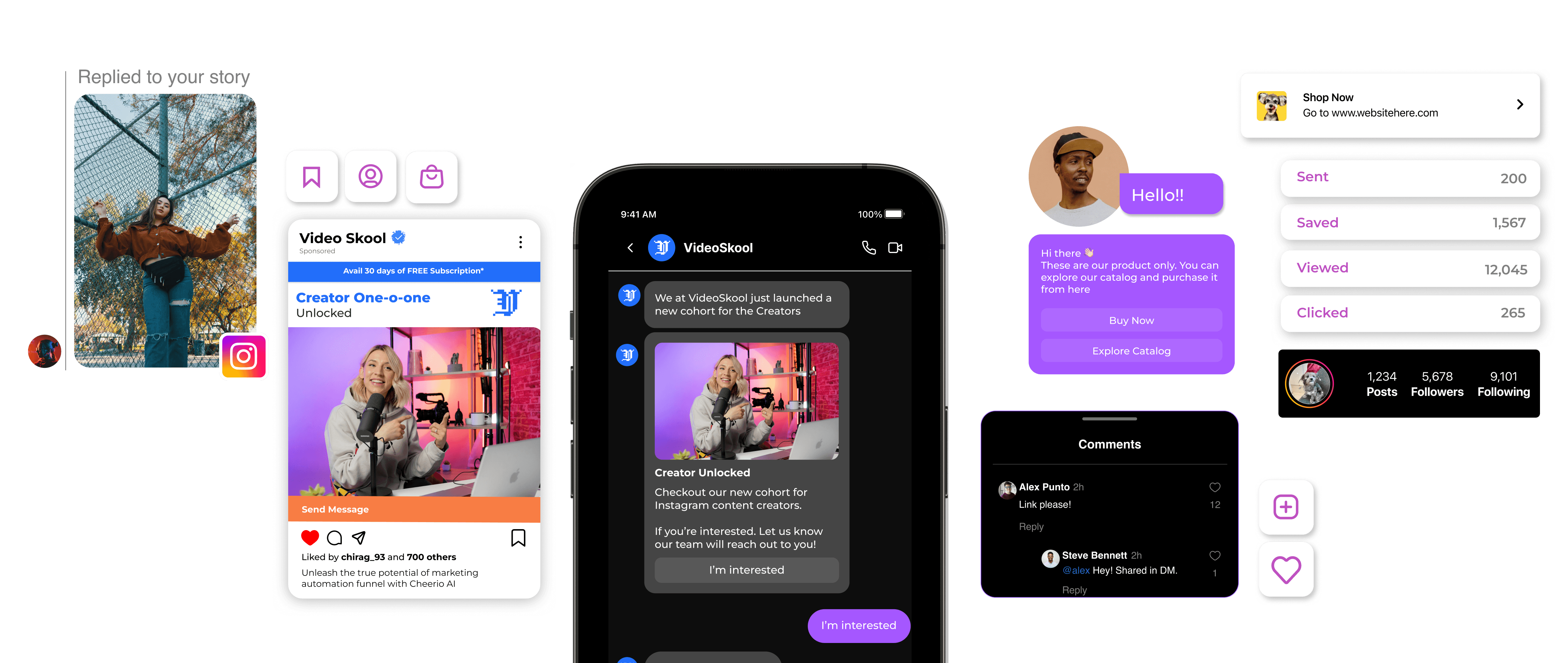 Respond faster, qualify better, and convert directly inside Instagram. Cheerio AI helps you automate DMs, story replies, comments, and ads; so every interaction moves customers forward.
