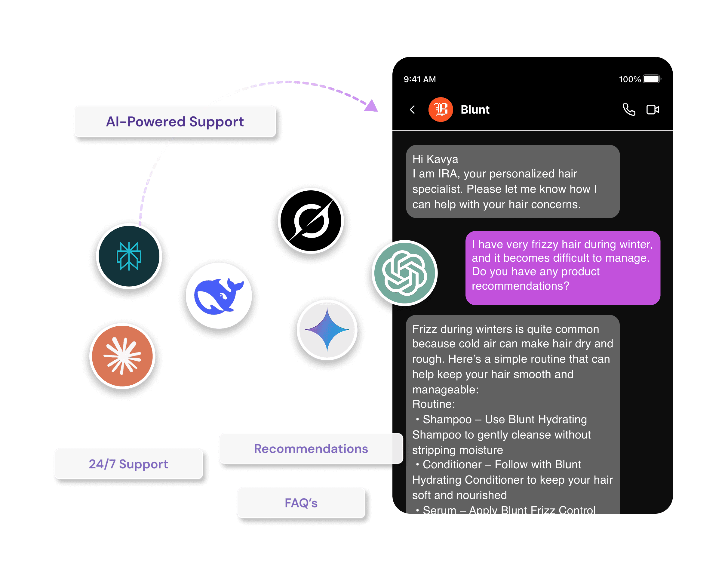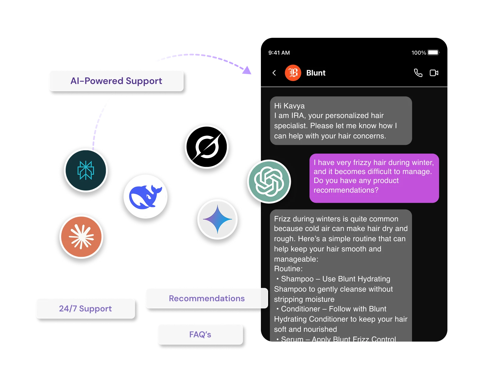 Train AI assistants to answer FAQs, qualify leads, and recommend products in real time. Escalate to human agents only when necessary with full conversation history intact.