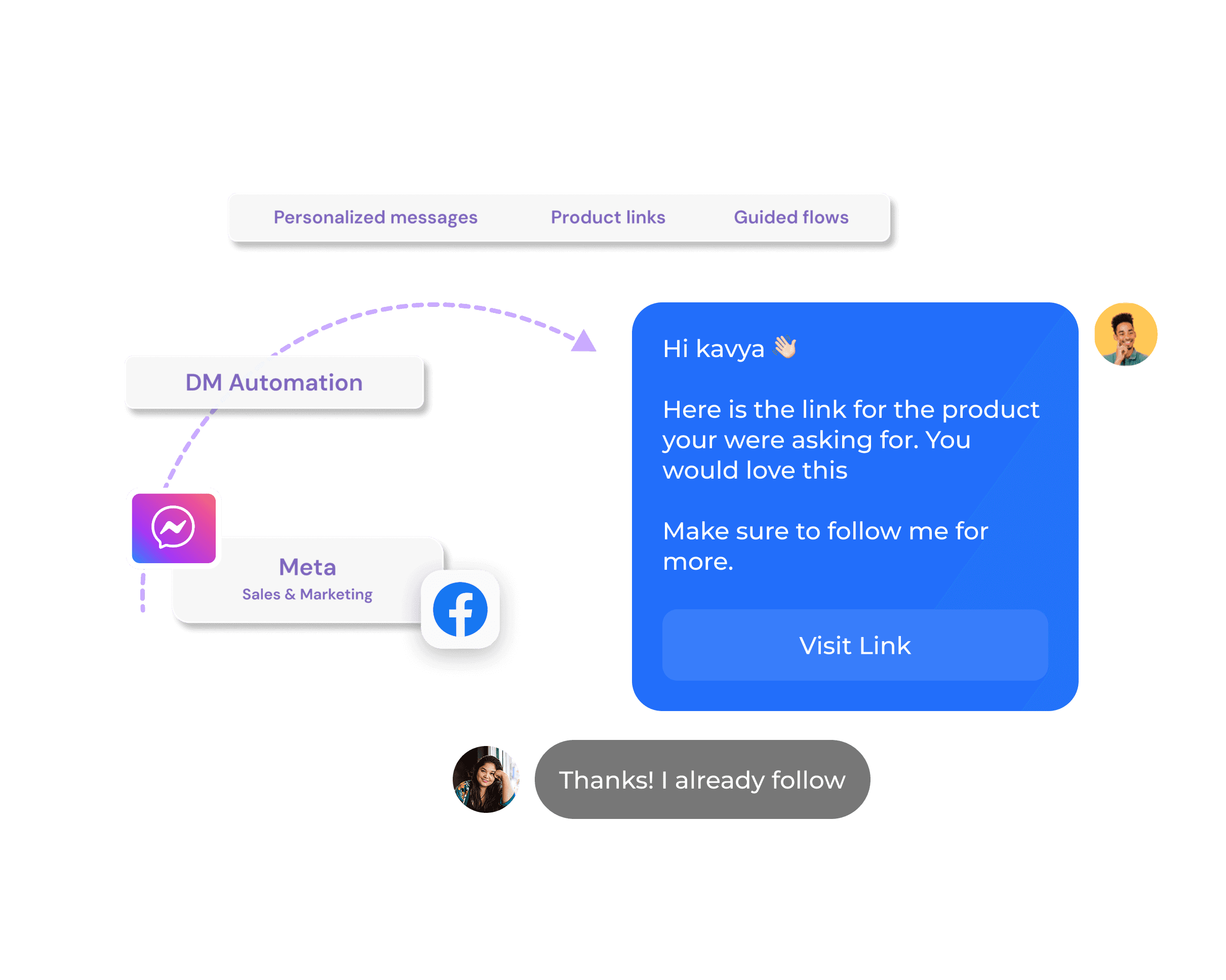 Send personalized replies instantly based on user intent, history, or actions.