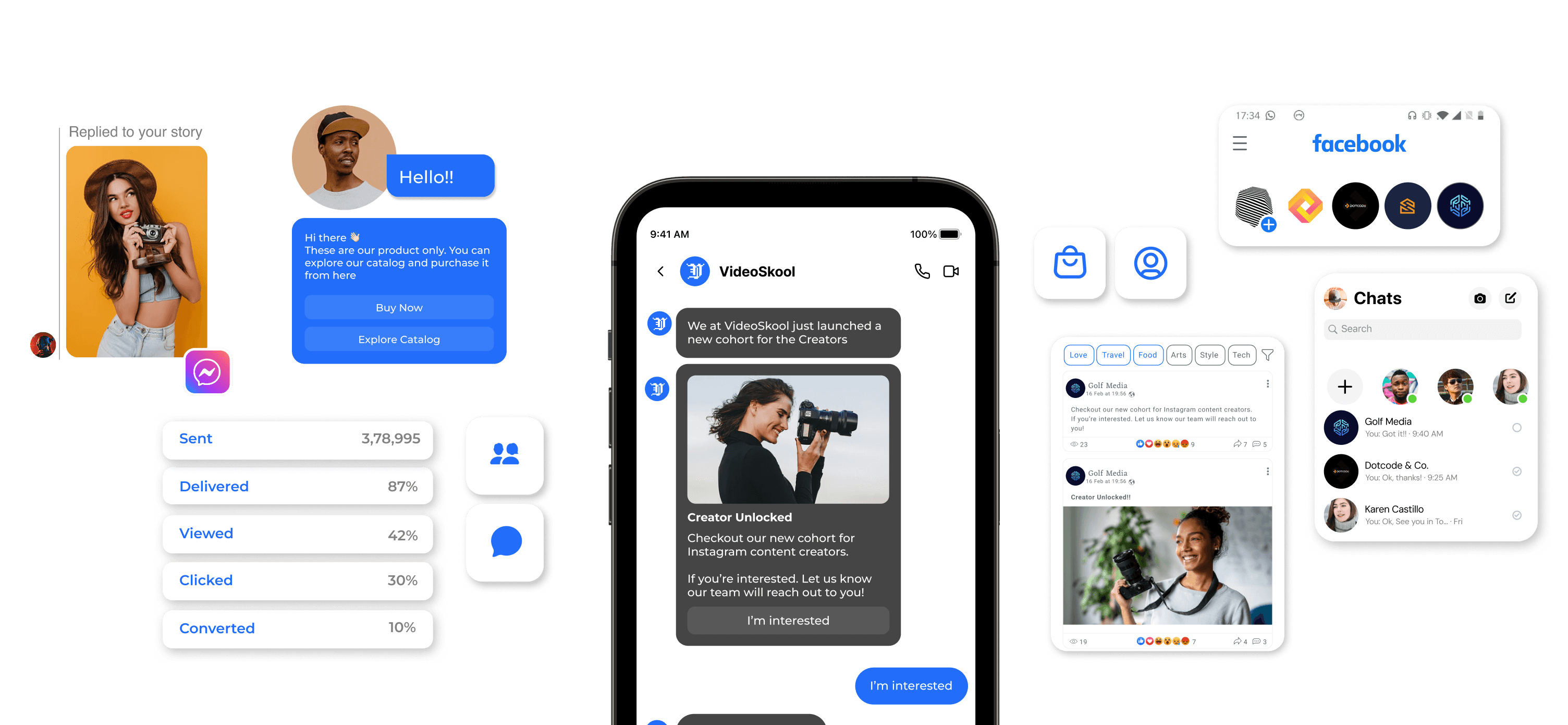 Messenger is a real-time communication channel where customers expect fast, contextual responses. Its conversational format makes it ideal for lead qualification, follow-ups, and guided interactions.