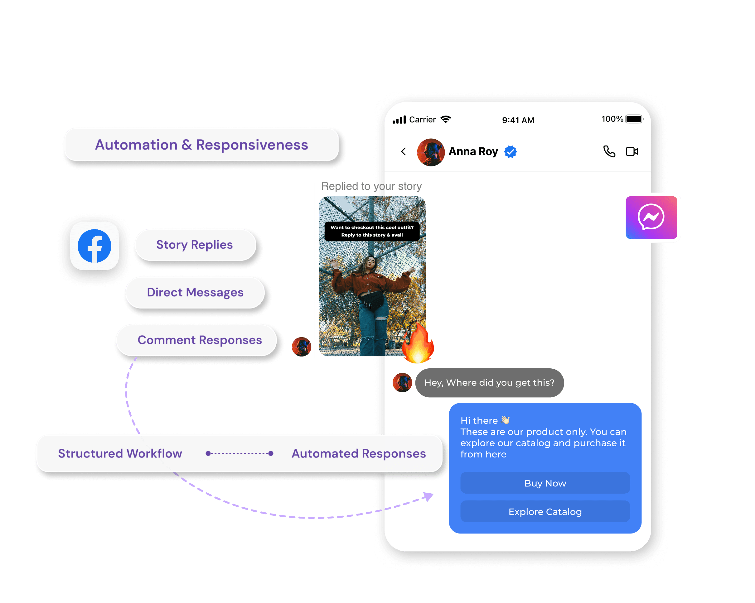 Automatically receive and respond to Messenger inquiries using structured workflows.