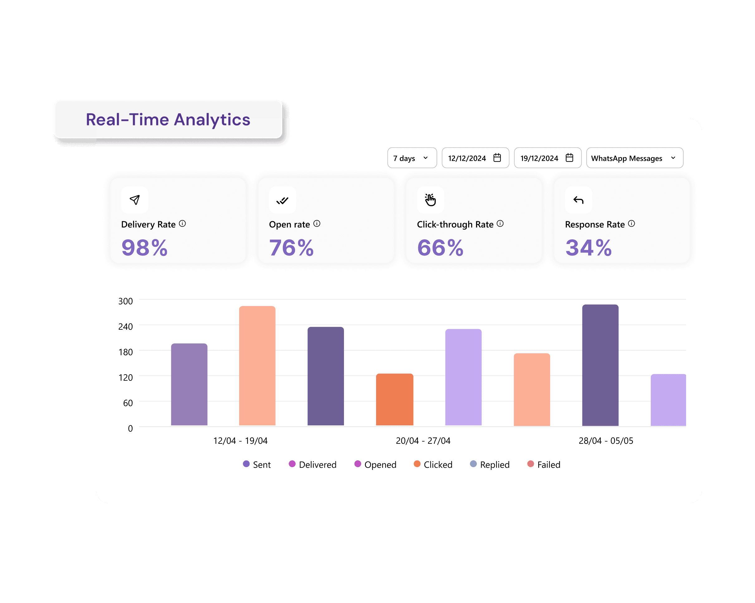 Track reads, clicks, replies, and conversions in real time. Understand what drives performance across campaigns and journeys. Optimize engagement with clear visibility into outcomes.