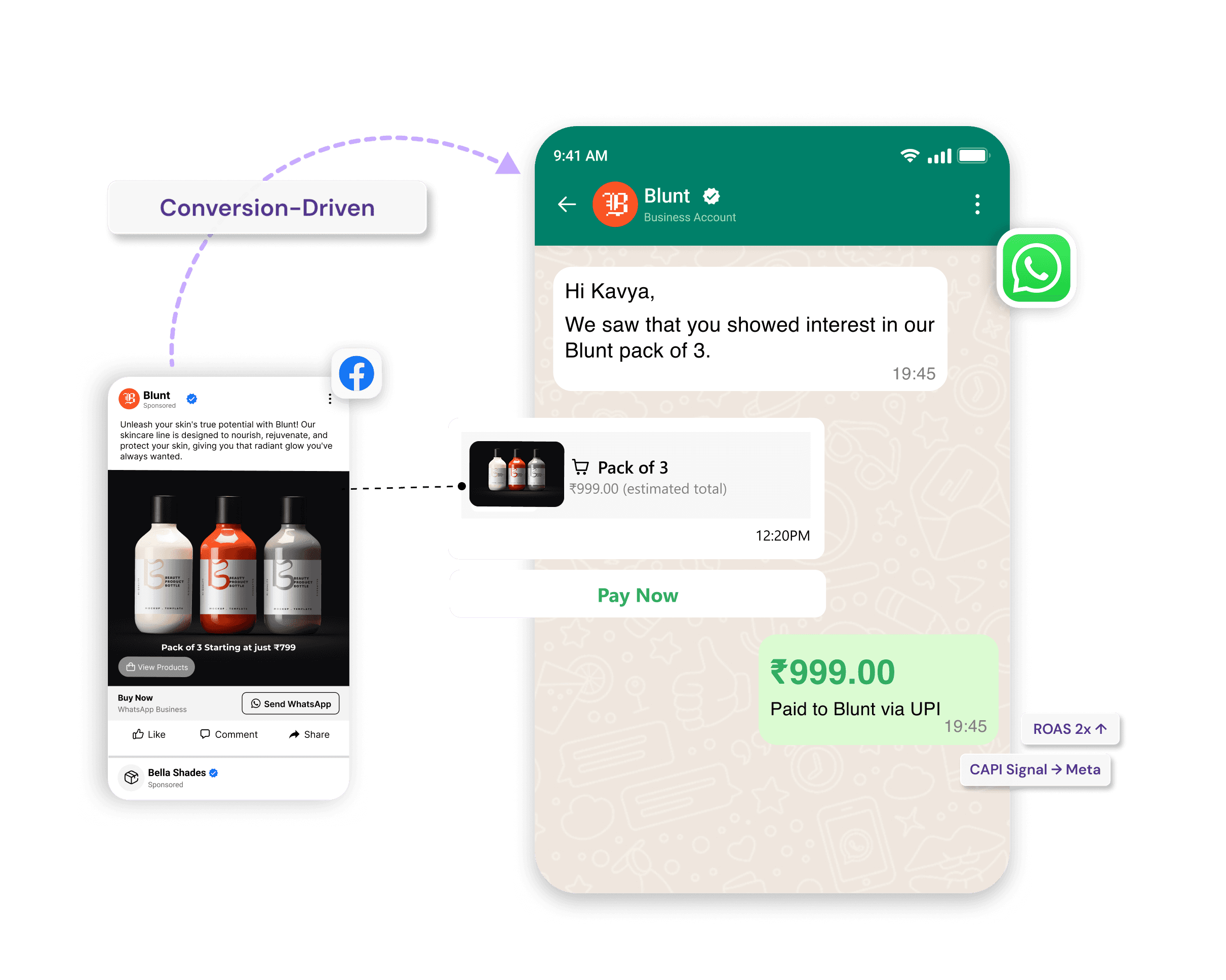 Send users from Meta ads straight into WhatsApp conversations where intent is highest. Cheerio AI triggers workflows instantly so every lead is engaged while interest is fresh. Drive higher-quality leads and lower cost per acquisition by meeting customers in chat.
