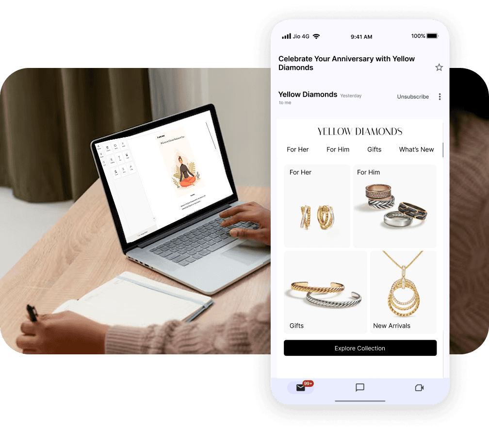 Elevate conversions with captivating email or with custom HTML uploads on the go