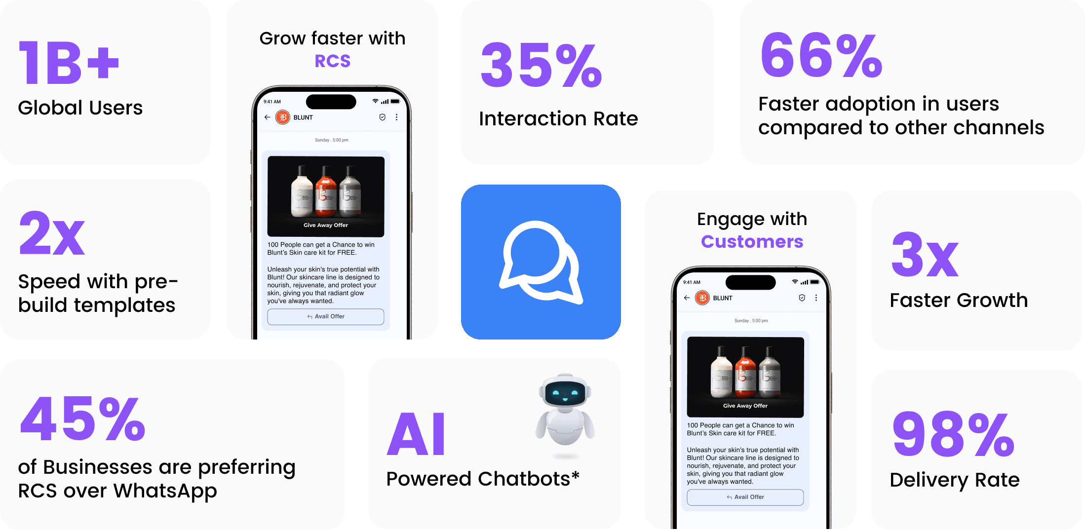 RCS combines the reach of SMS with the interactivity of WhatsApp. It works natively on Android without requiring users to install an app.