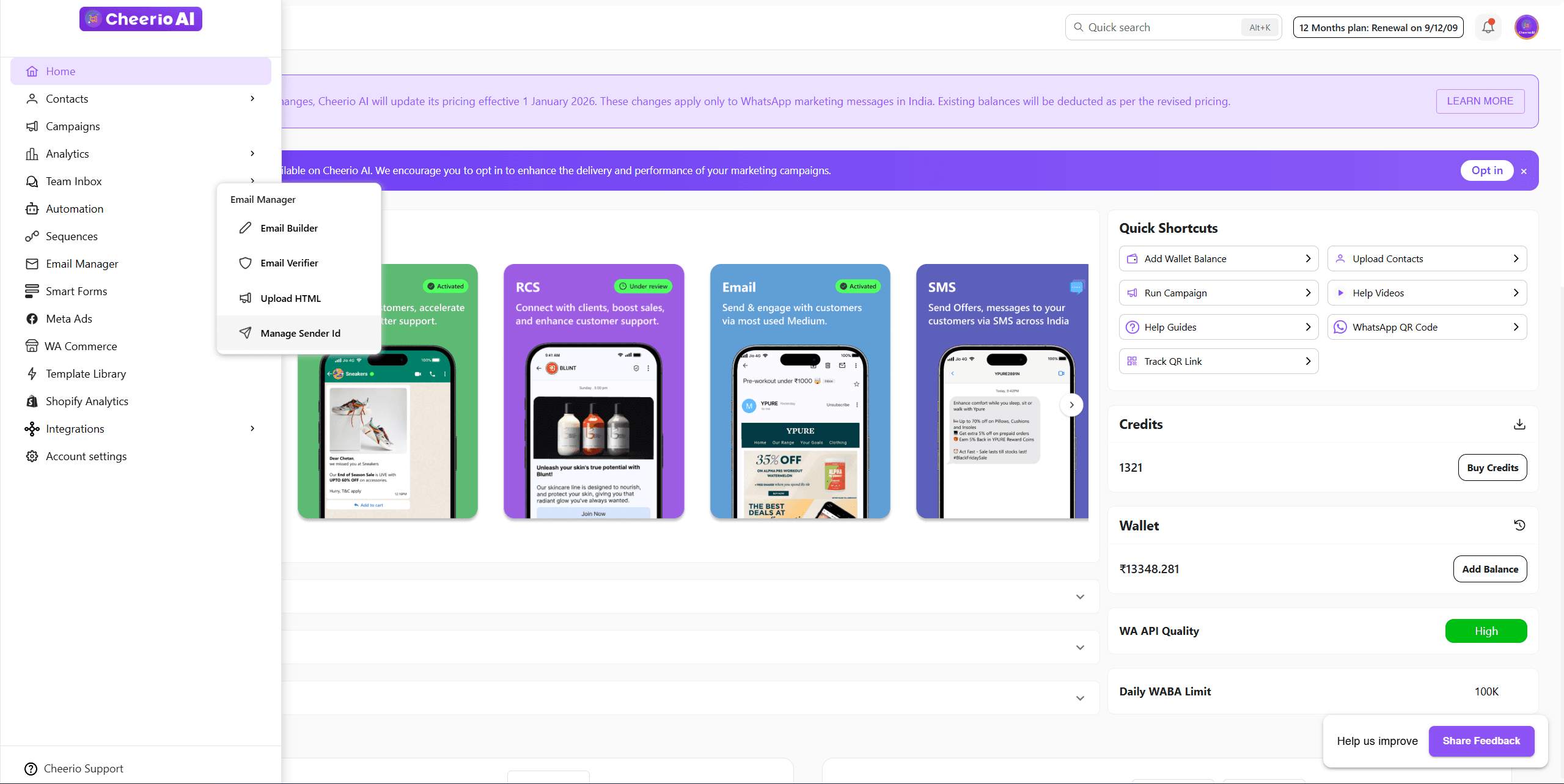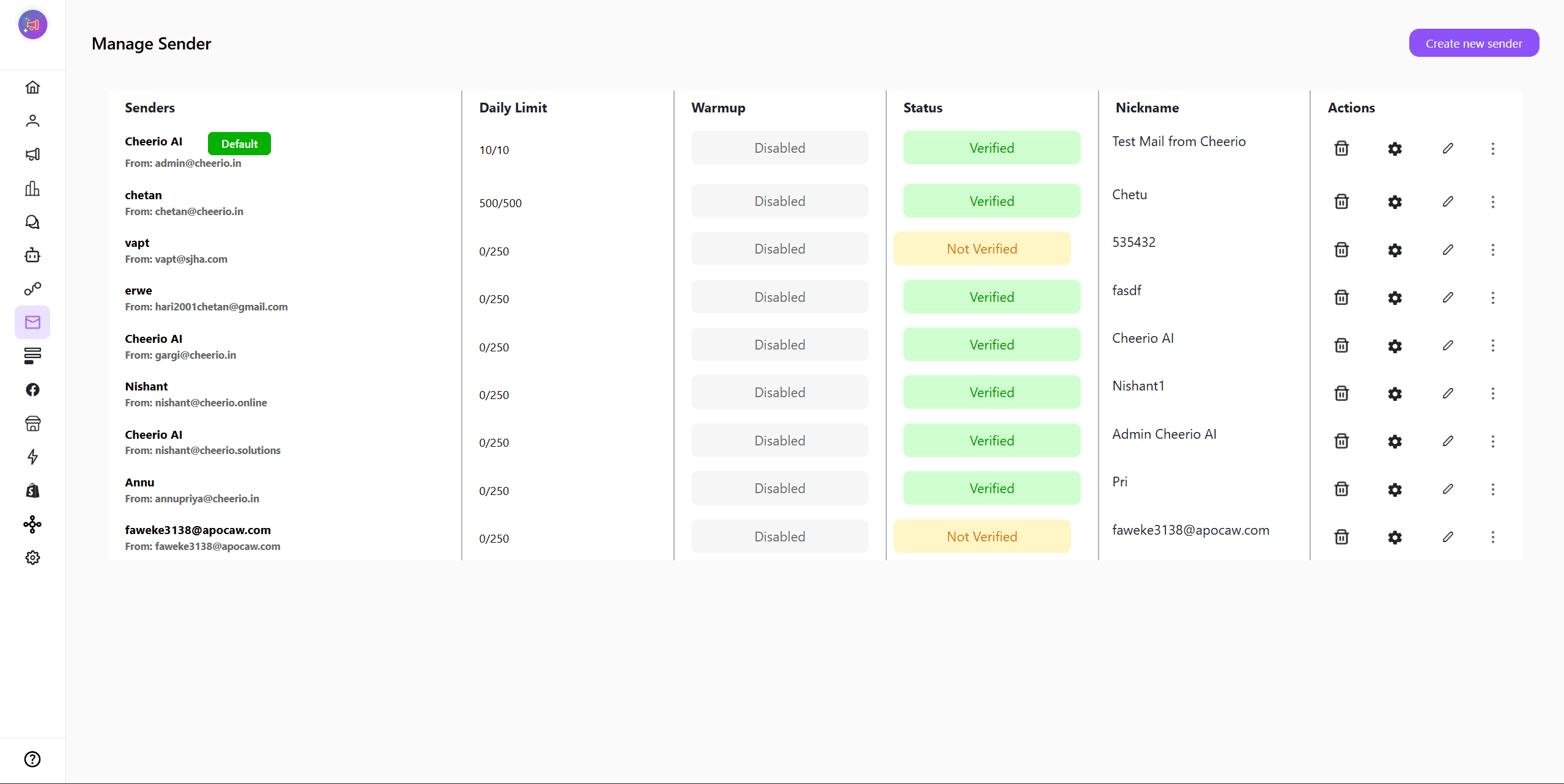 Now, your email sender id is ready to send campaigns and setup automations. For better delivery ensure to use email warmup.