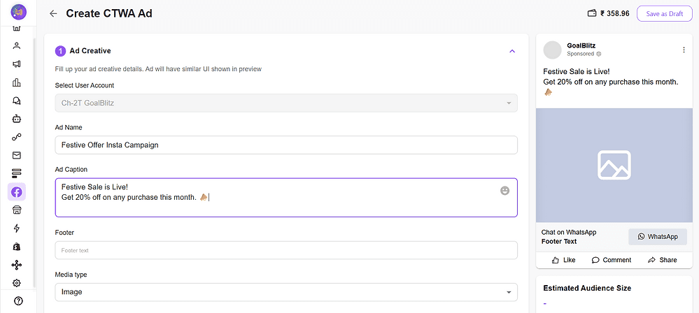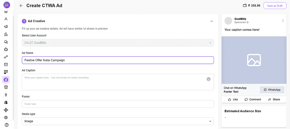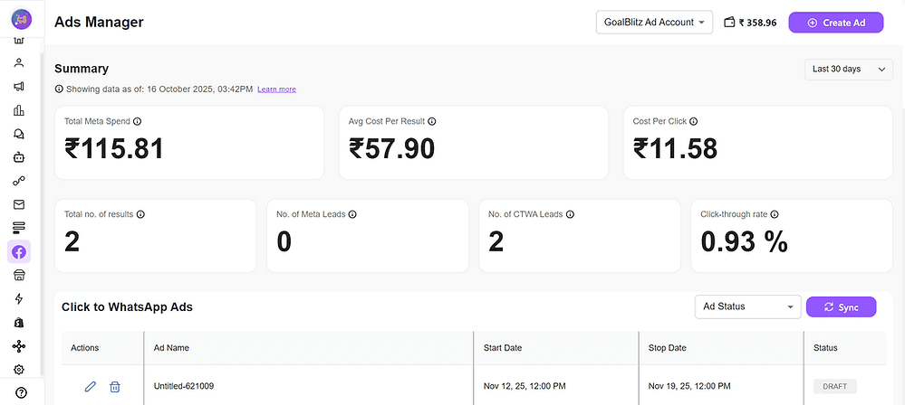 Home Dashboard → Meta Ads → Ads Manager → Create Ad