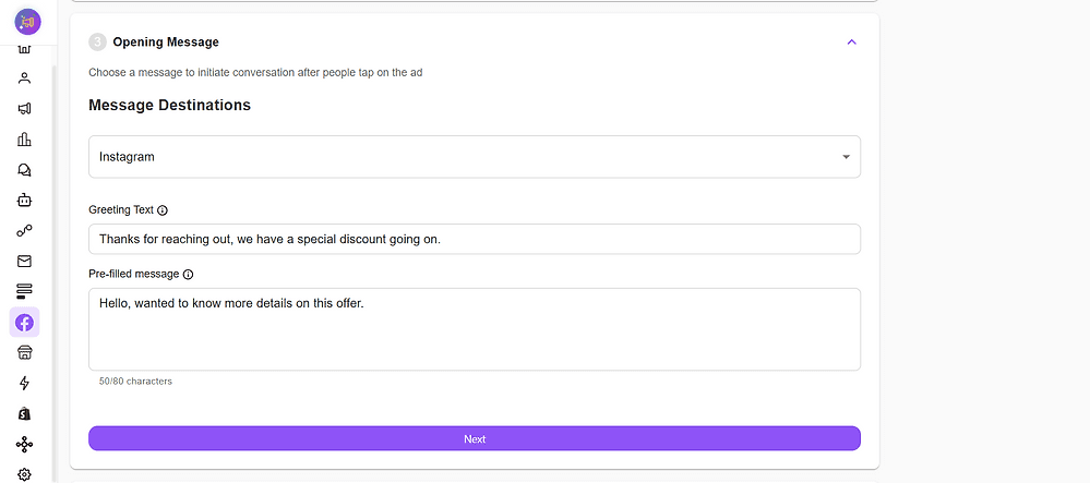 Create a keyword matching the ad’s pre-filled DM text, link it to a Workflow, and activate it. Incoming DMs from the ad will automatically follow the linked workflow.