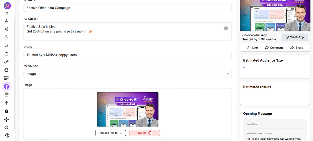Cheerio AI enables an integrated workflow—from ad creation to automated post-message responses, routing, and analytics.