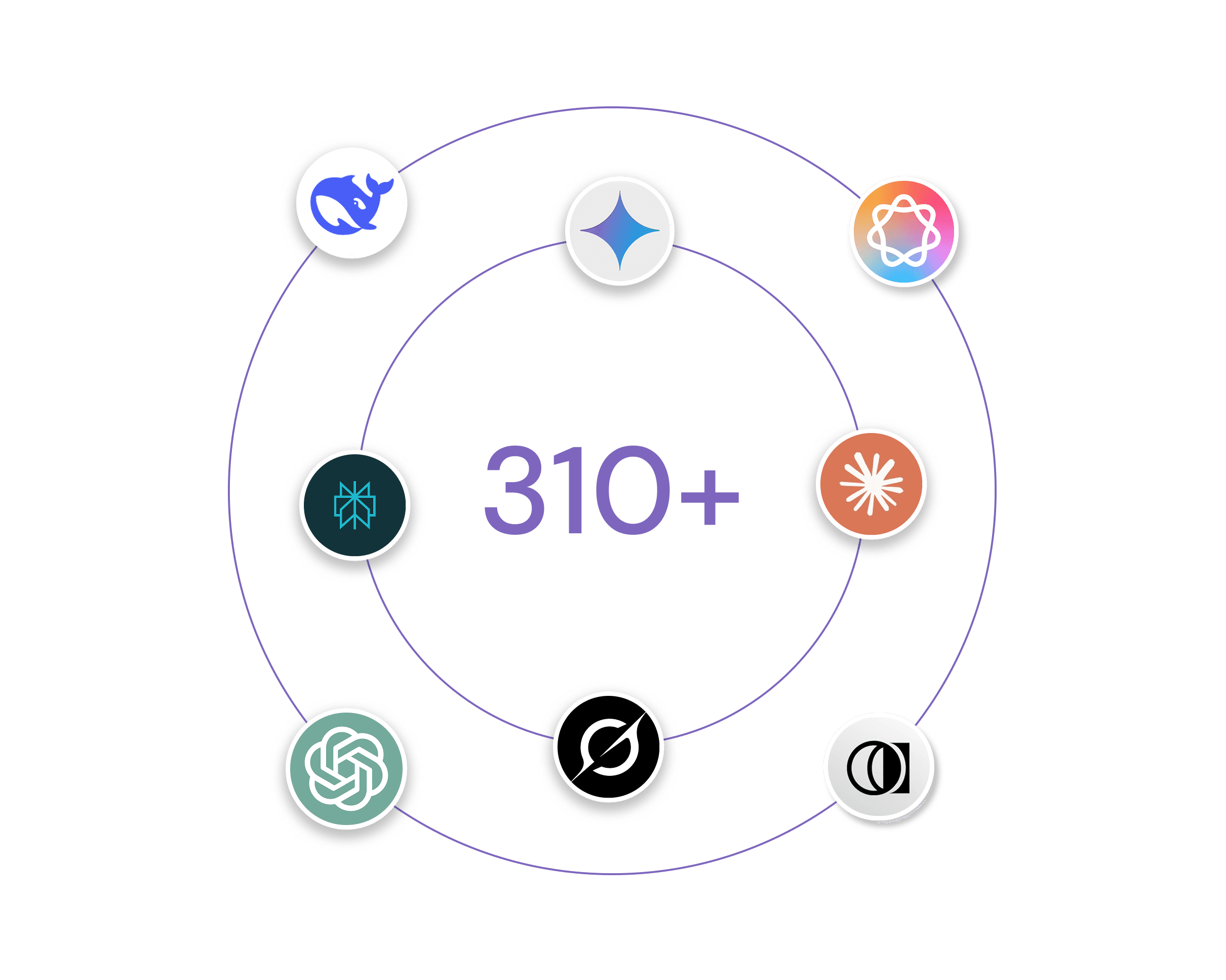 Choose from 310+ AI models across providers to power your agentic systems. Optimize for speed, reasoning depth, cost, or domain expertise without being locked into a single model. Swap models as needs change, without rebuilding workflows or logic.