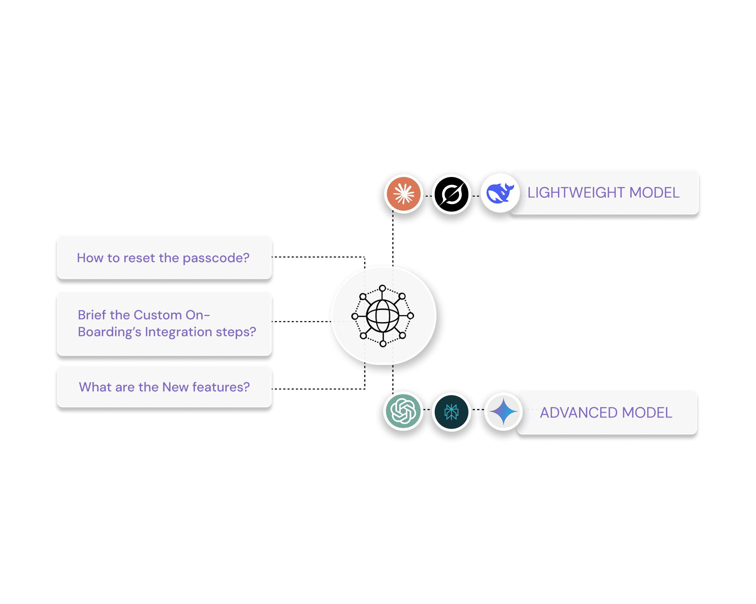 Automatically match query complexity to the right model. Use lightweight models where possible and advanced models only when needed. Reduce token waste, control AI costs, and scale usage sustainably across teams.