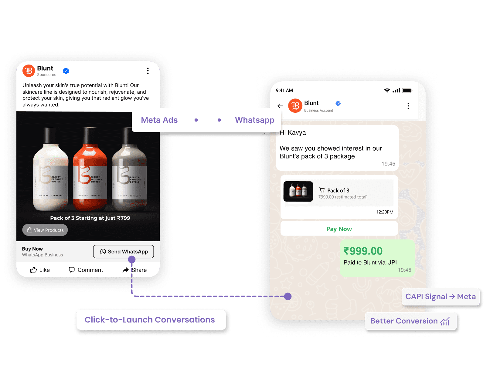 Run Click-to-WhatsApp and Click-to-Messenger ads that open directly into automated chat flows. Every click connects users to structured conversations designed to capture intent and move them forward instantly.
