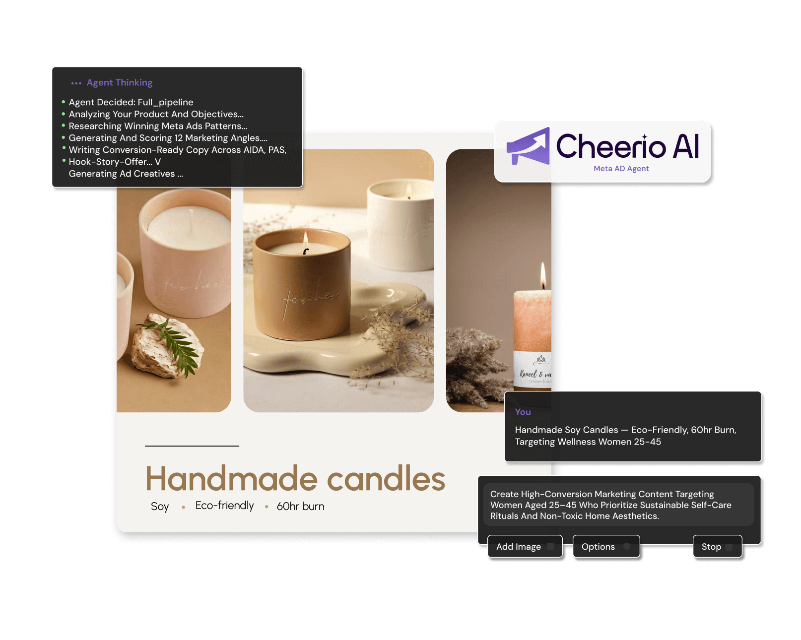 Cheerio AI analyzes your ads using insights from the Meta Ad Library and real campaign patterns. Get clear, actionable recommendations on copy clarity, creative effectiveness, CTA strength, and visual fit, so you fix what won’t work before it costs you. Improve performance with data-backed suggestions, not guesswork.