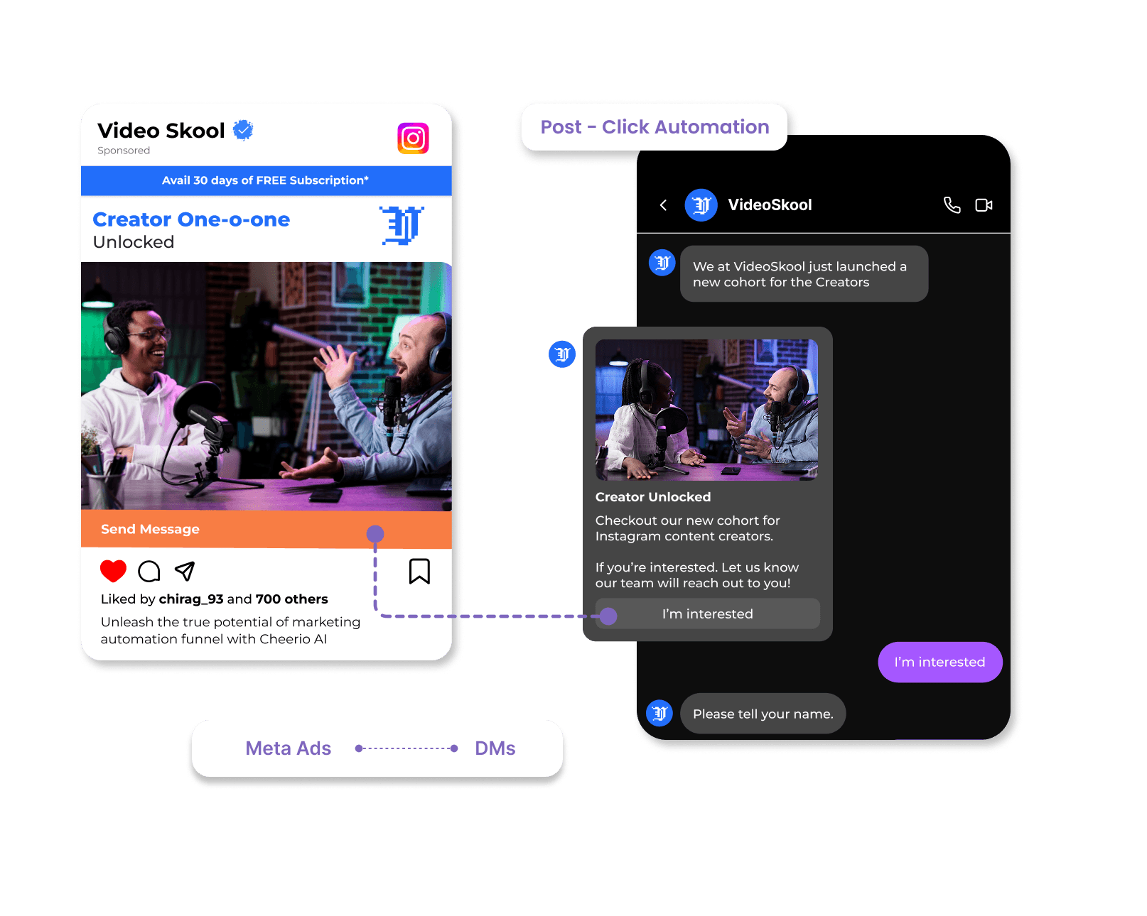 Meta ad–driven conversations can continue seamlessly across Instagram, WhatsApp, and Messenger. Cheerio AI preserves context, intent, and conversation history as users move between platforms, so every reply feels continuous, relevant, and conversion-ready.